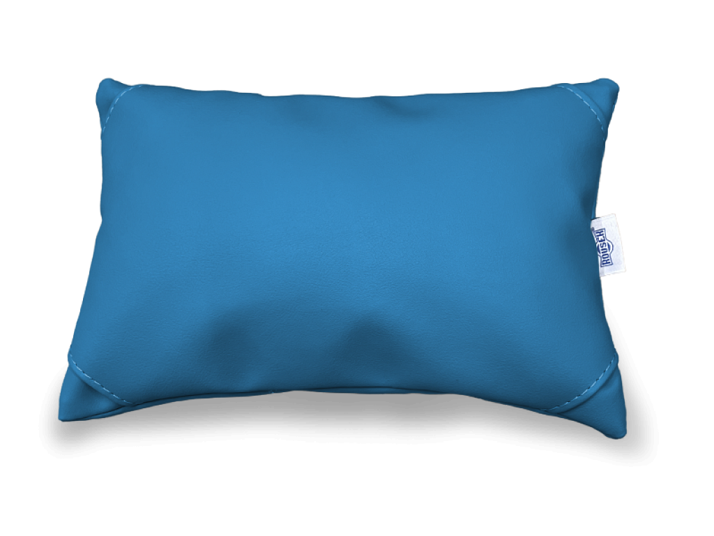 Menší čalouněný polštářek vhodný jako podložka pod hlavu při ležení na lehátku. Modré provedení. Více