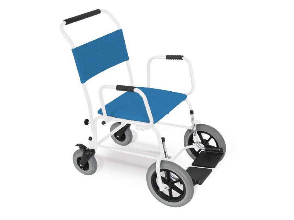 Transportní křeslo je osazeno zadními otočnými kolečky o průměru 200 mm, která zvyšují ovladatelnost a jsou vybavena nášlapnou brzdou.
