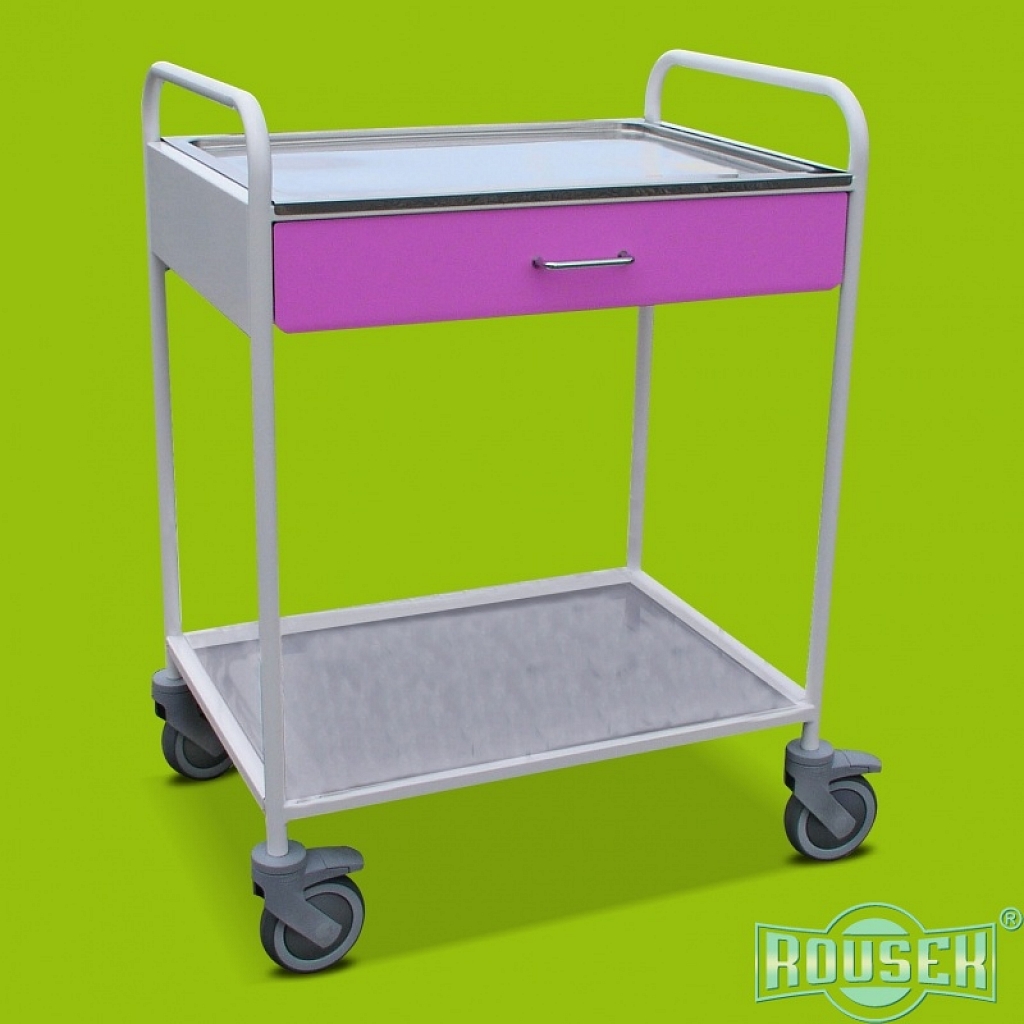 Pojízdný nemocniční nástrojový stolek se zásuvkou SNLM-700-Z je vyroben z ocelových lakovaných profilů. Stolek má madla a dvě odkládací plata. Více