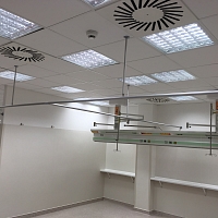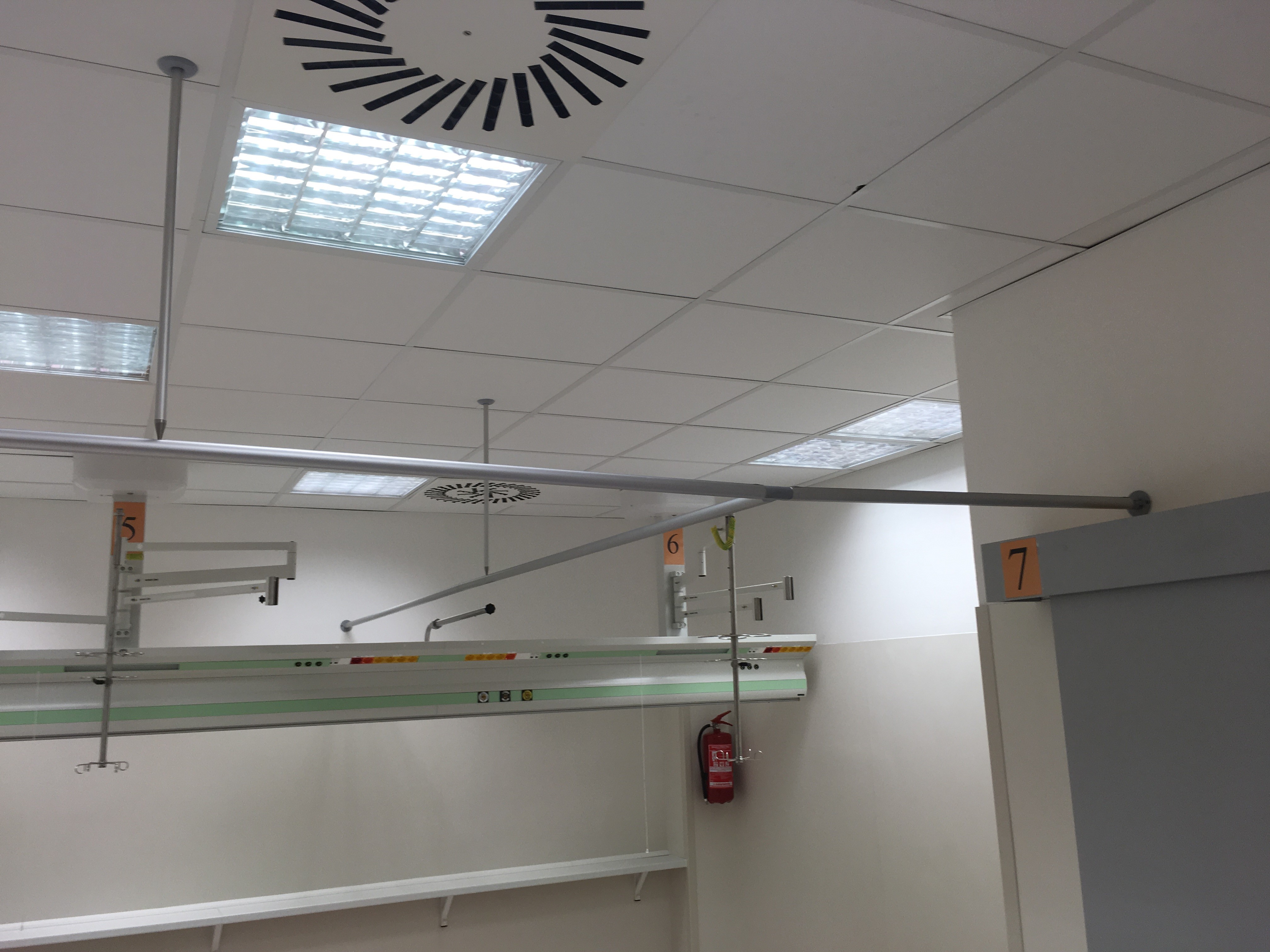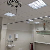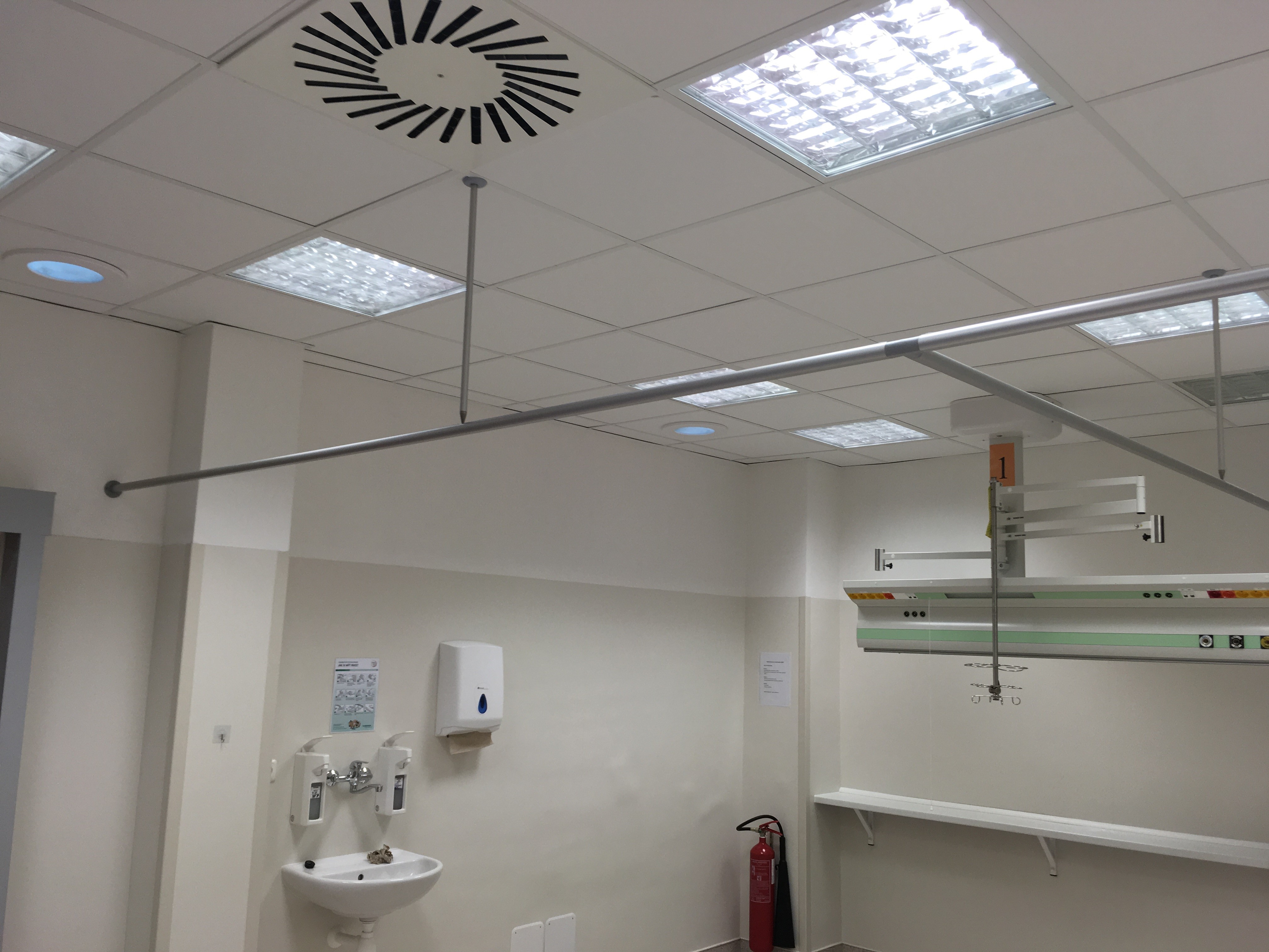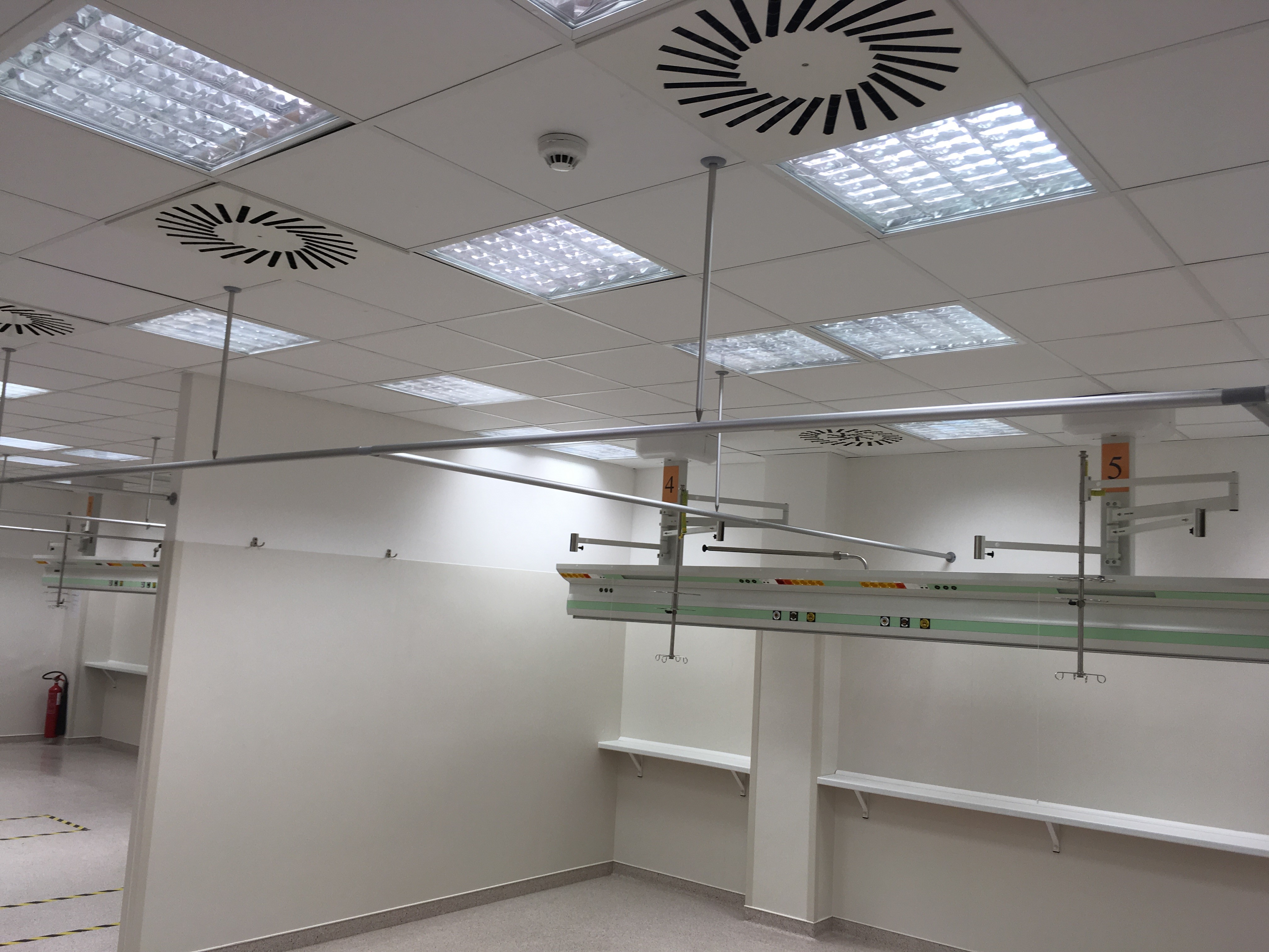 Díky tomuto řešení zůstává prostor místnosti otevřený pro manipulaci se zdravotnickou technikou a vybavením.