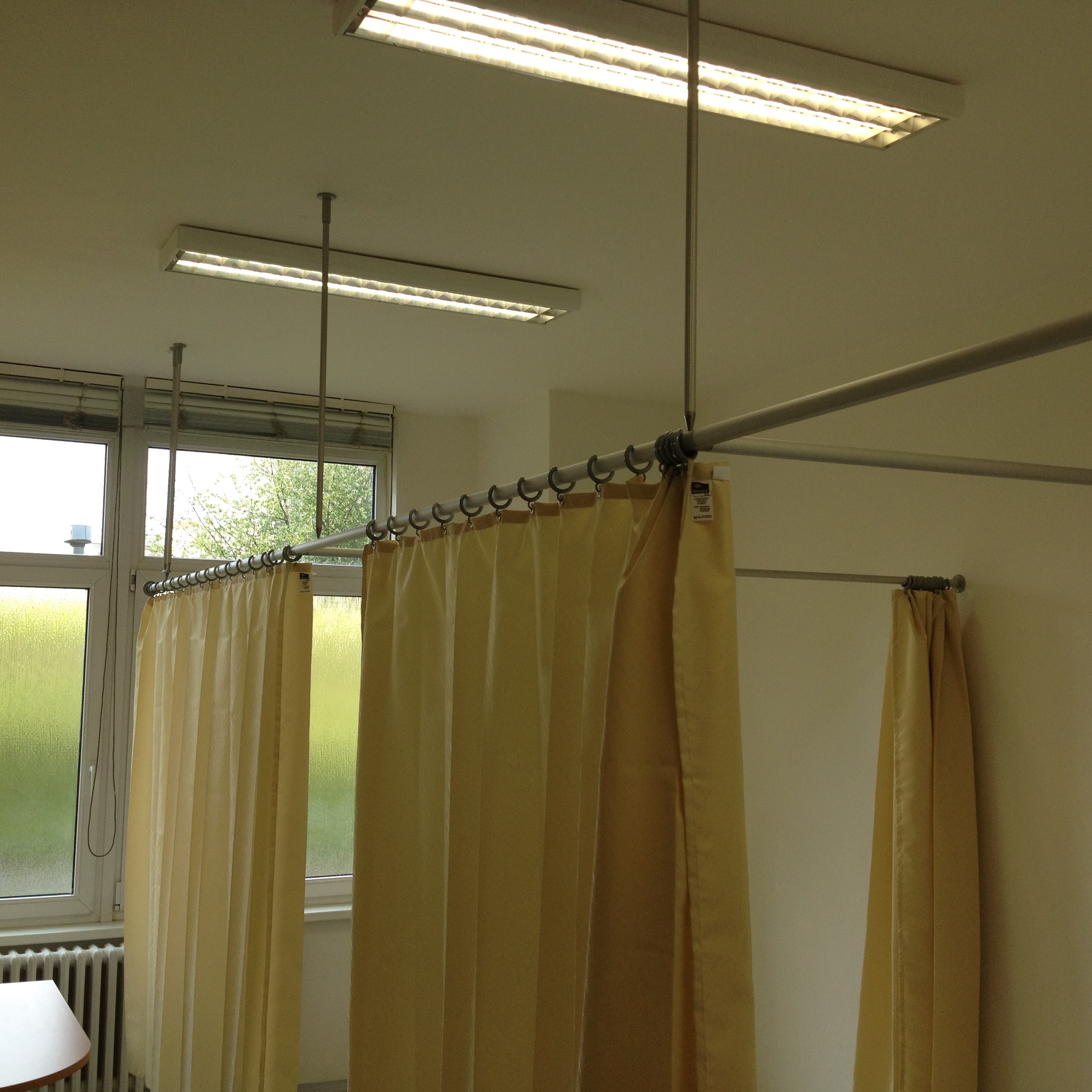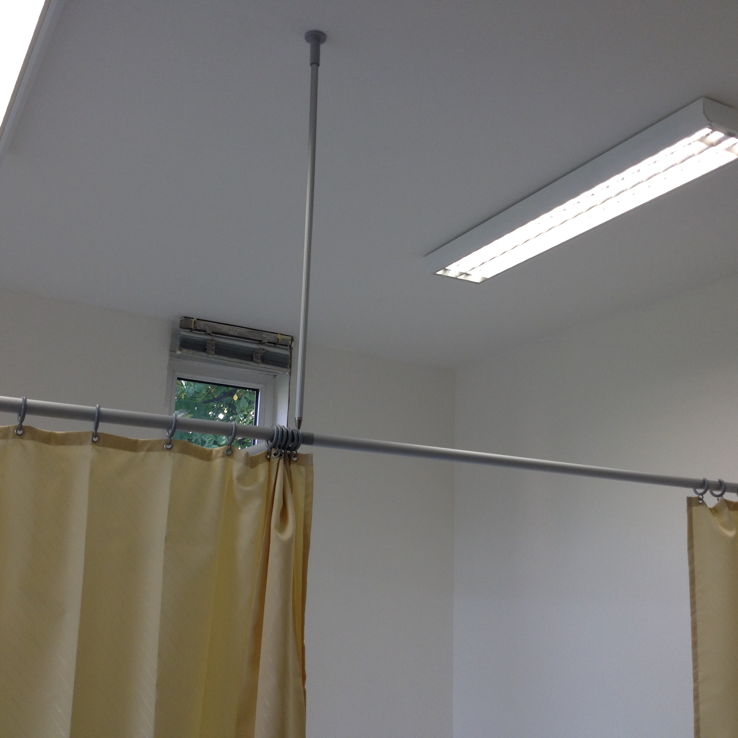 Pro psychiatrické centrum v Praze Bohnicích jsme provedli kompletní realizaci závěsného systému zástěn RVS na míru.