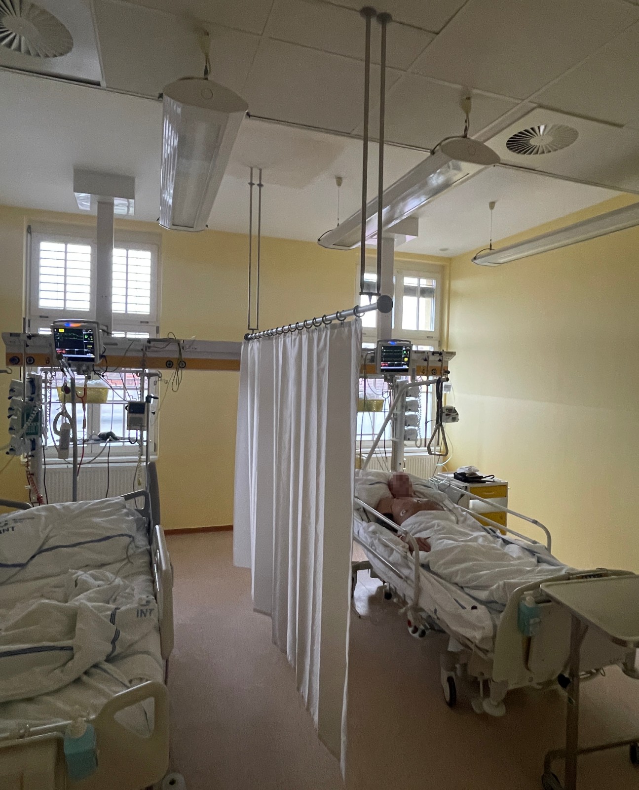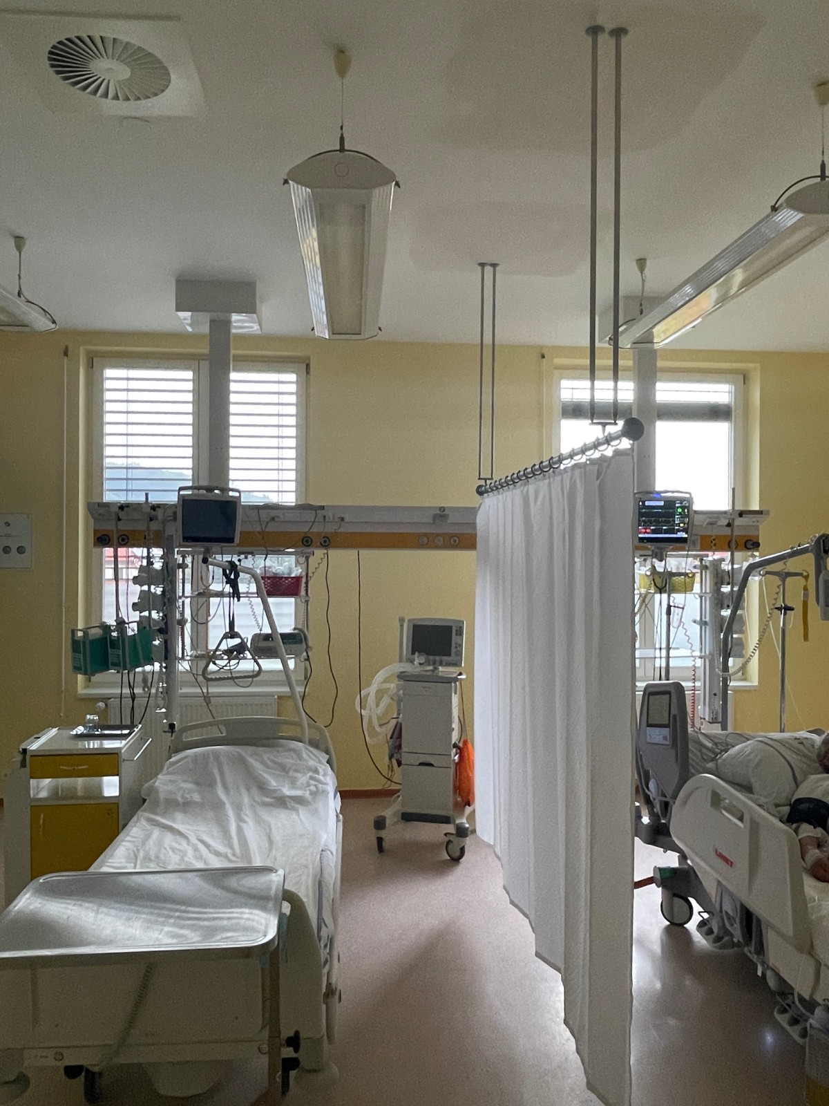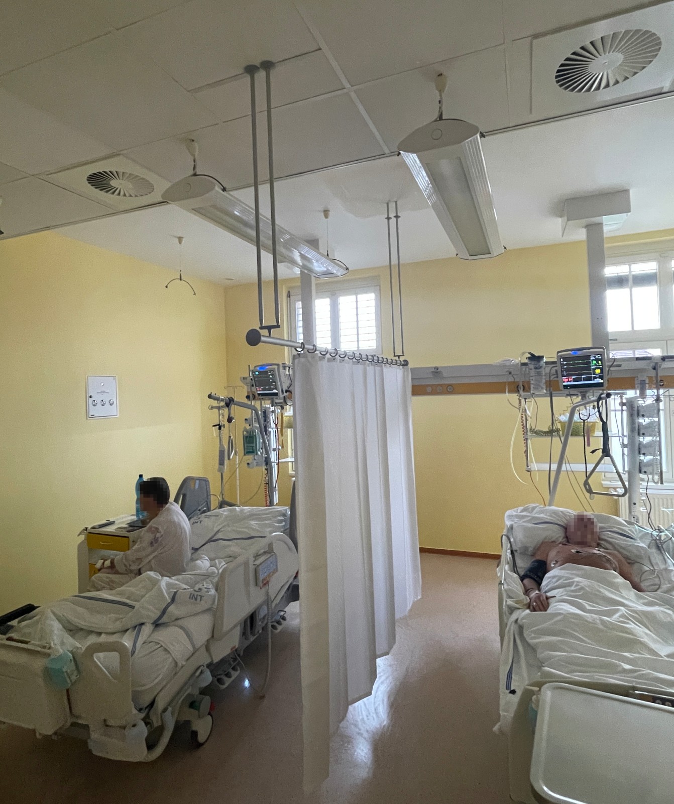 Požadavek oblastní nemocnice v Jičíně na oddělení pacientů na pokojích jednotky intenzivní péče byl vyřešen pomocí stropních zástěn.